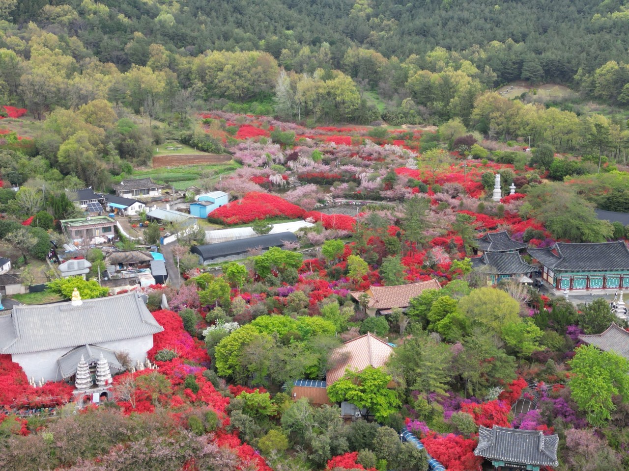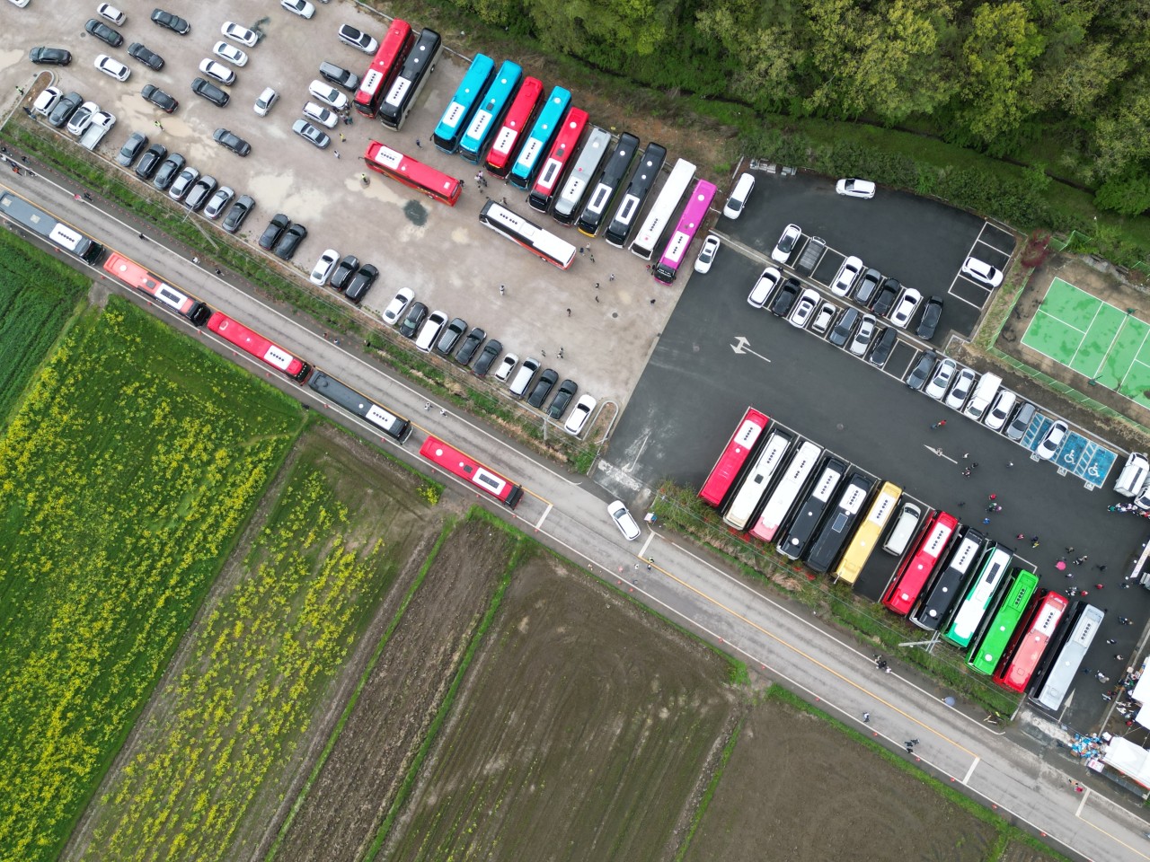 전국 방방곡곡에서 온 관광버스들의 색깔이 꽃만큼 이쁘네요~