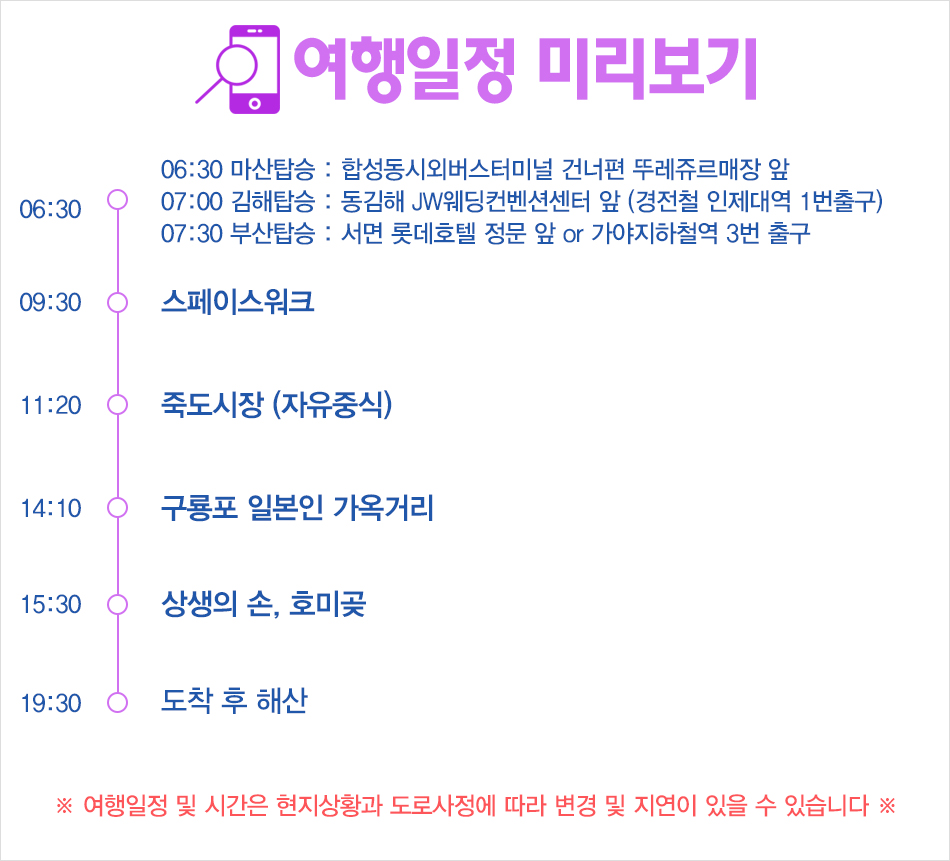 ※ 본 상품은 지자체에서 지원을 받아 운영되는 상품으로 지역방문 사실확인을 위해 단체사진촬영 및 자유중식 후, 식사영수증을 가이드에게 제출부탁드립니다. (지자체 제출용으로 확인 후 폐기처리됩니다)